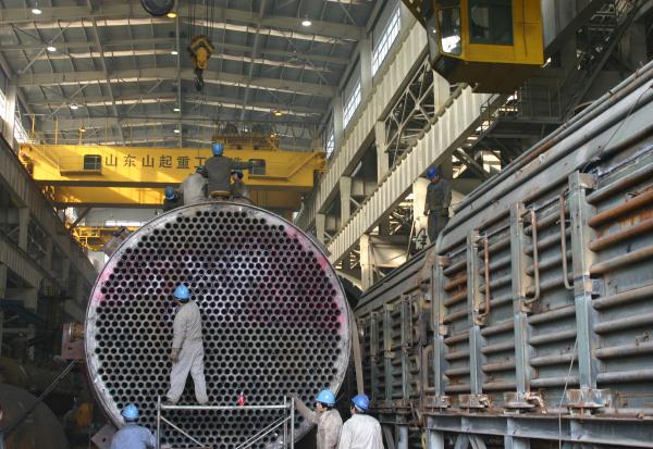 2011年元月3日,機械制造公司員工們在寬敞明亮的廠房內施工,制造加氫反應器。2010年機械制造公司自行投資興建了制造面積達10000平方米的千噸級高壓重型容器車間。...